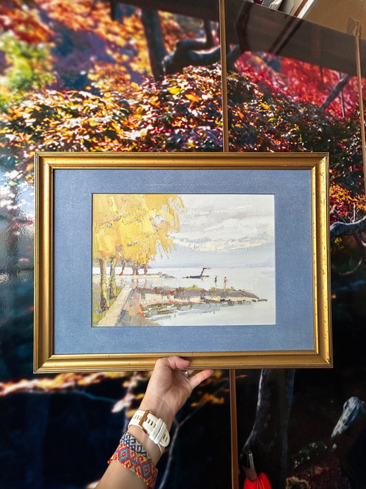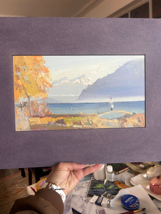 !Cold bath in Lutry plage in February. 9.02.2026. 26x36 cm. Vintage frame