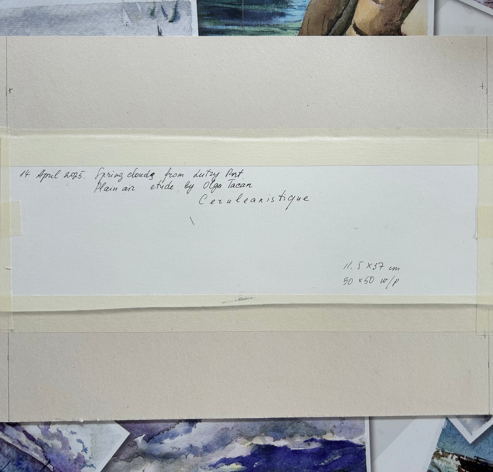 Spring clouds above the mountains in Lutry Port. Clouds are singing. 14 April 2025. 11.5x37 cm
