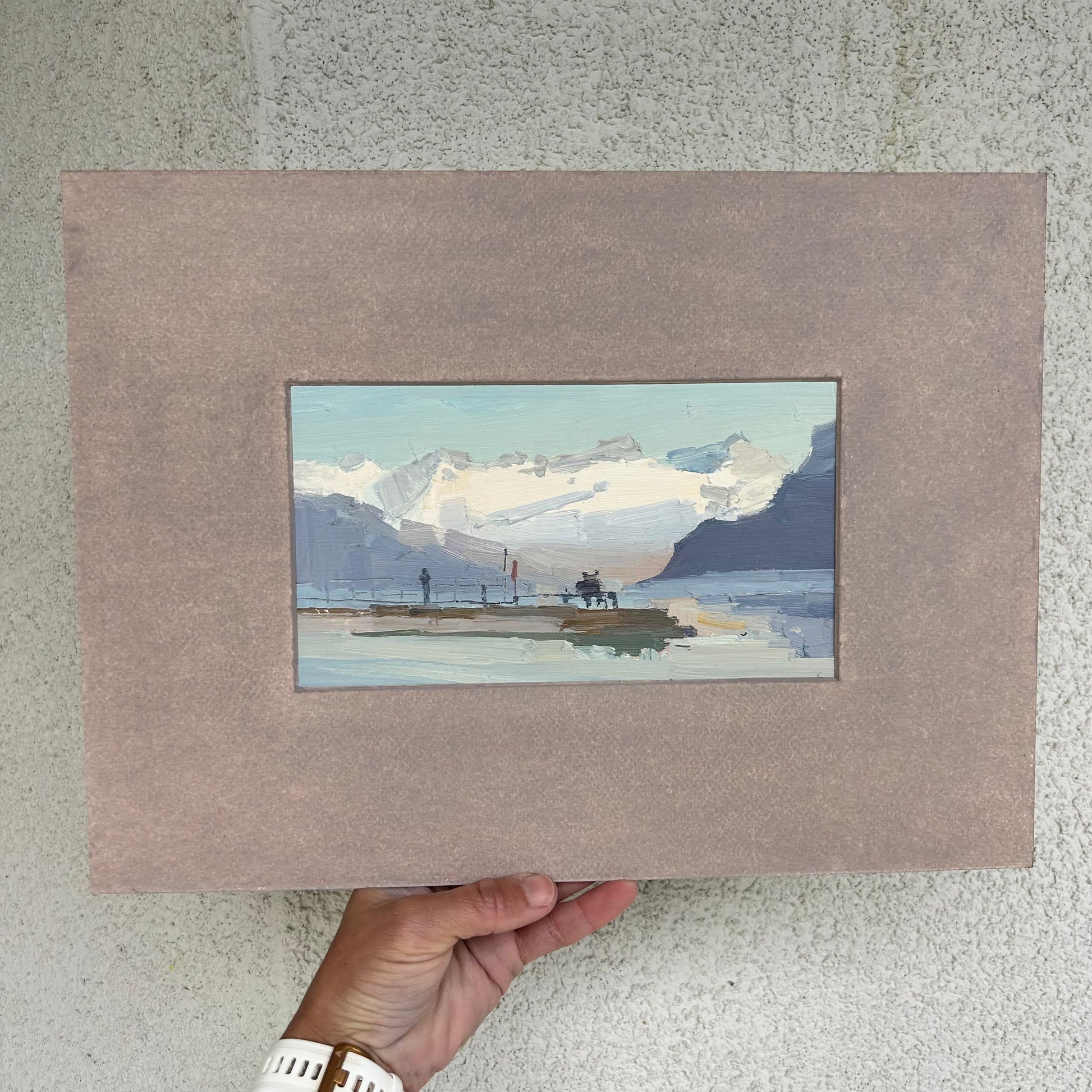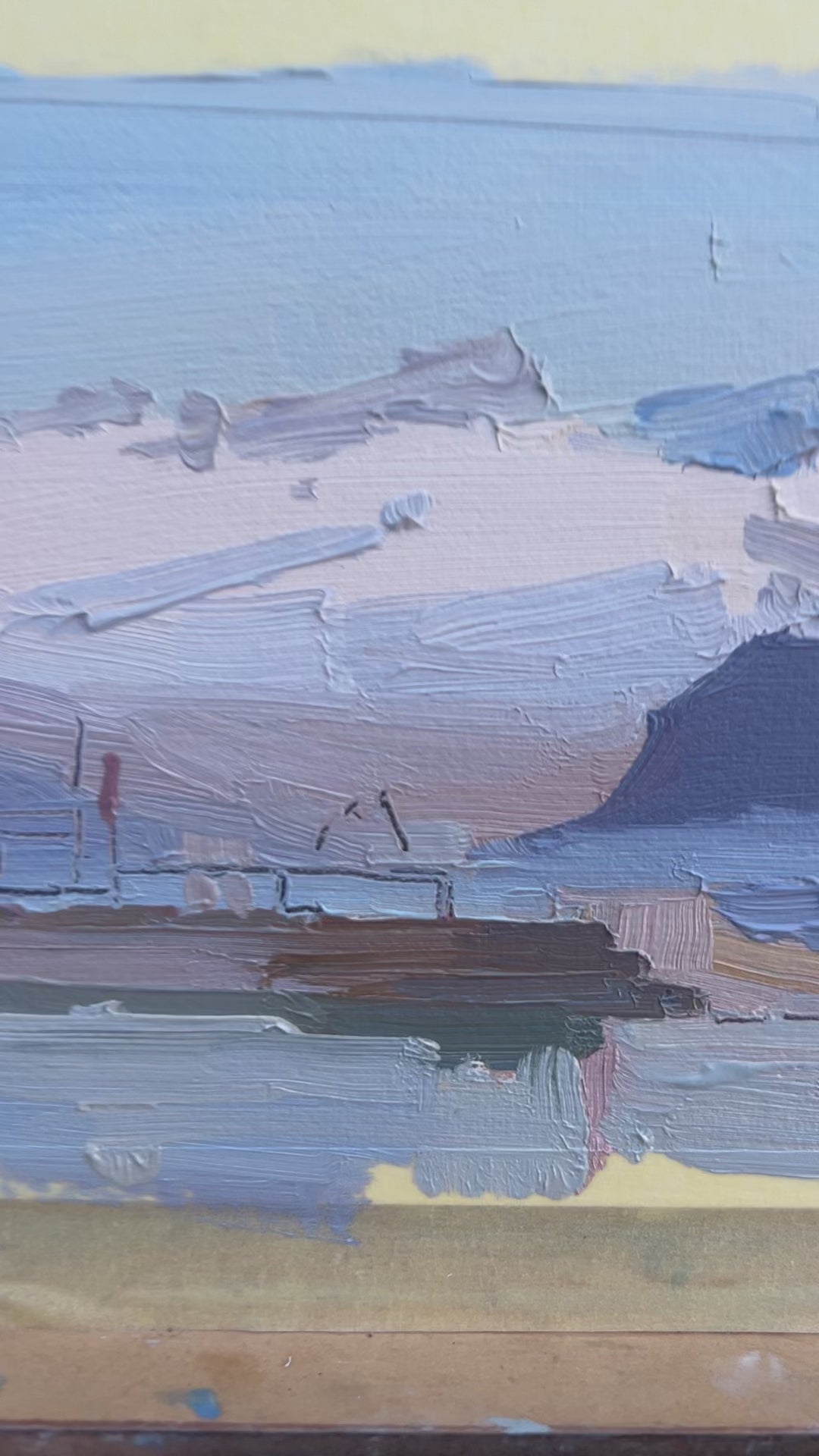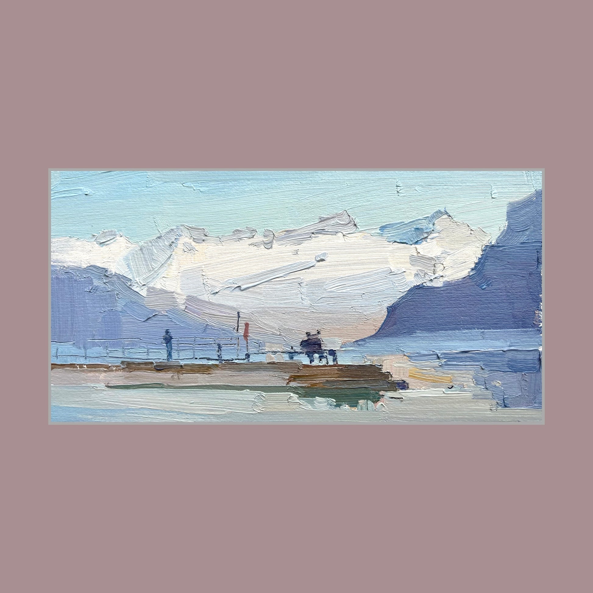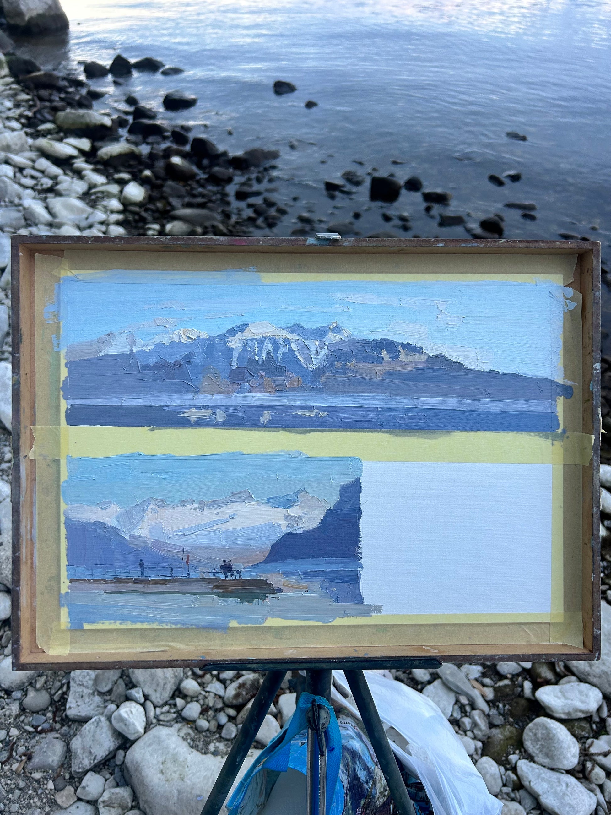Sunset in Lutry and a couple on the bench. 19th March 2025. 11.5x21 cm.