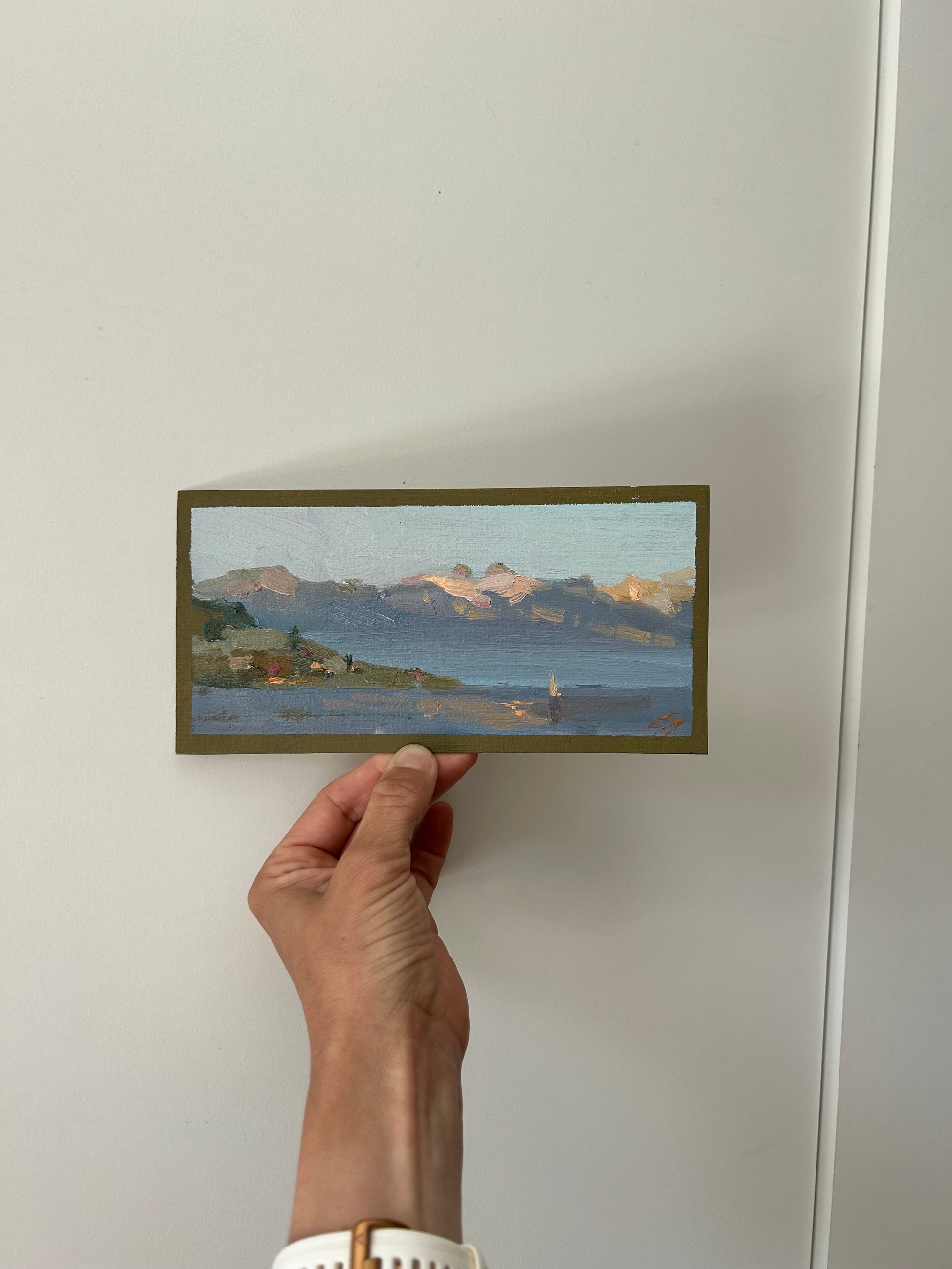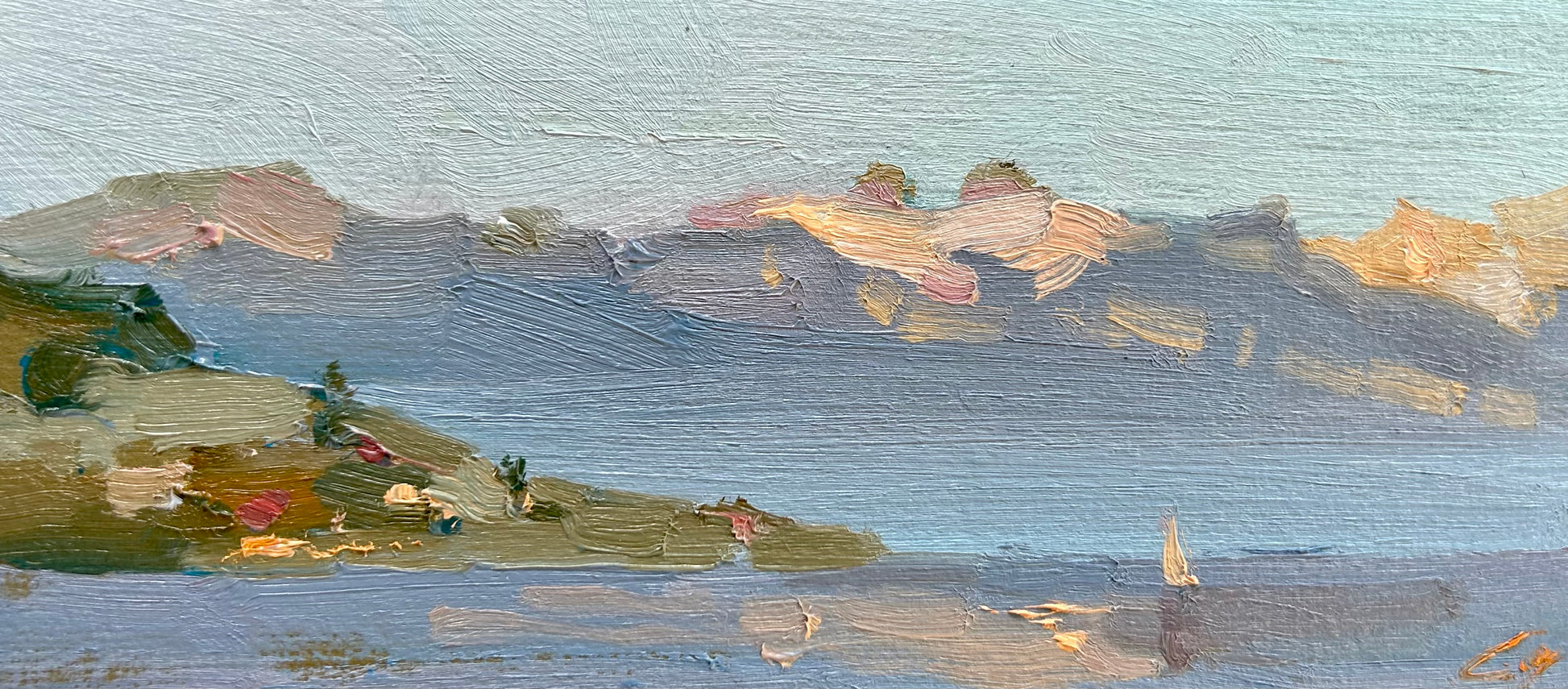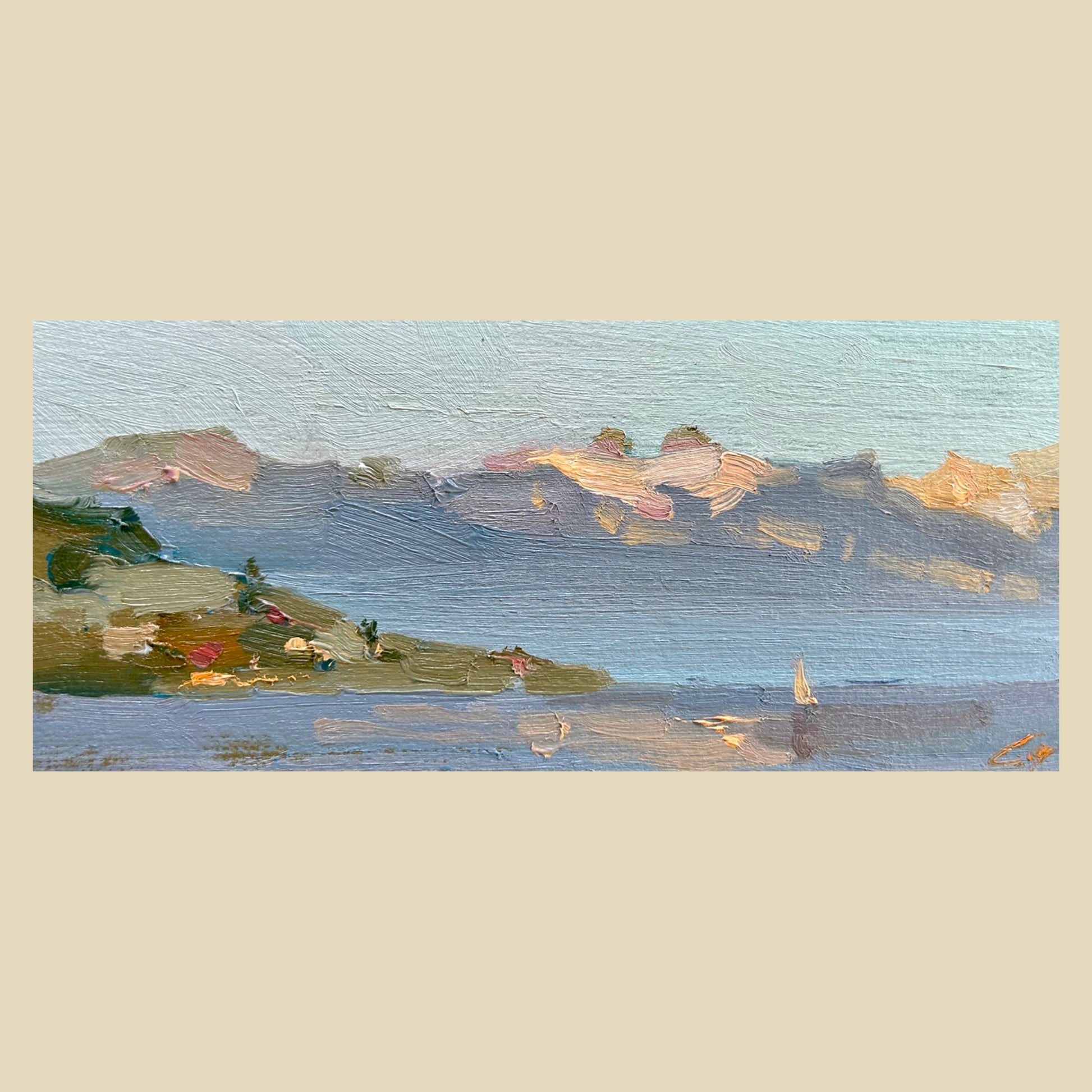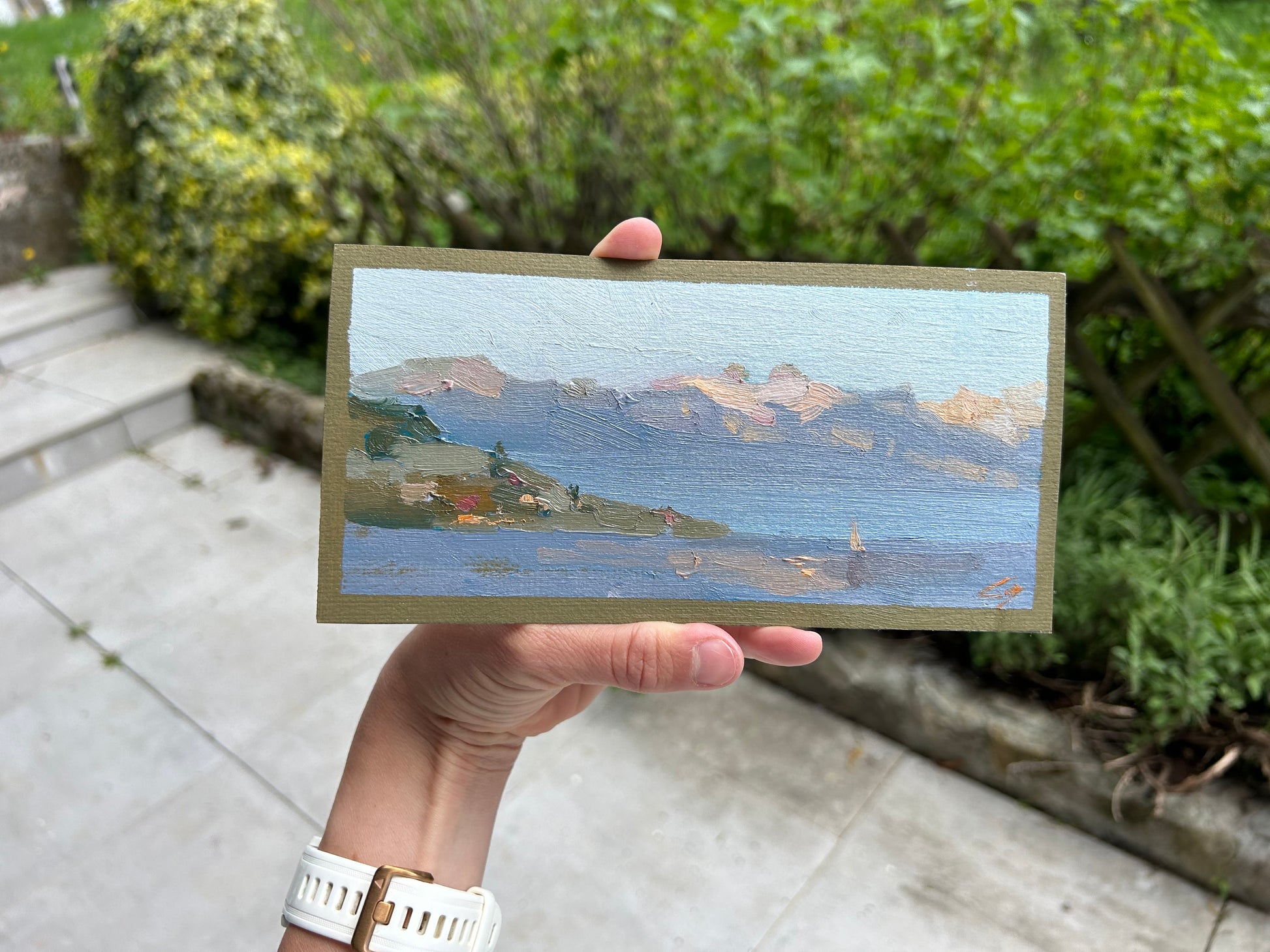 Swiss mountains after winter. April. Lutry. 7x19cm