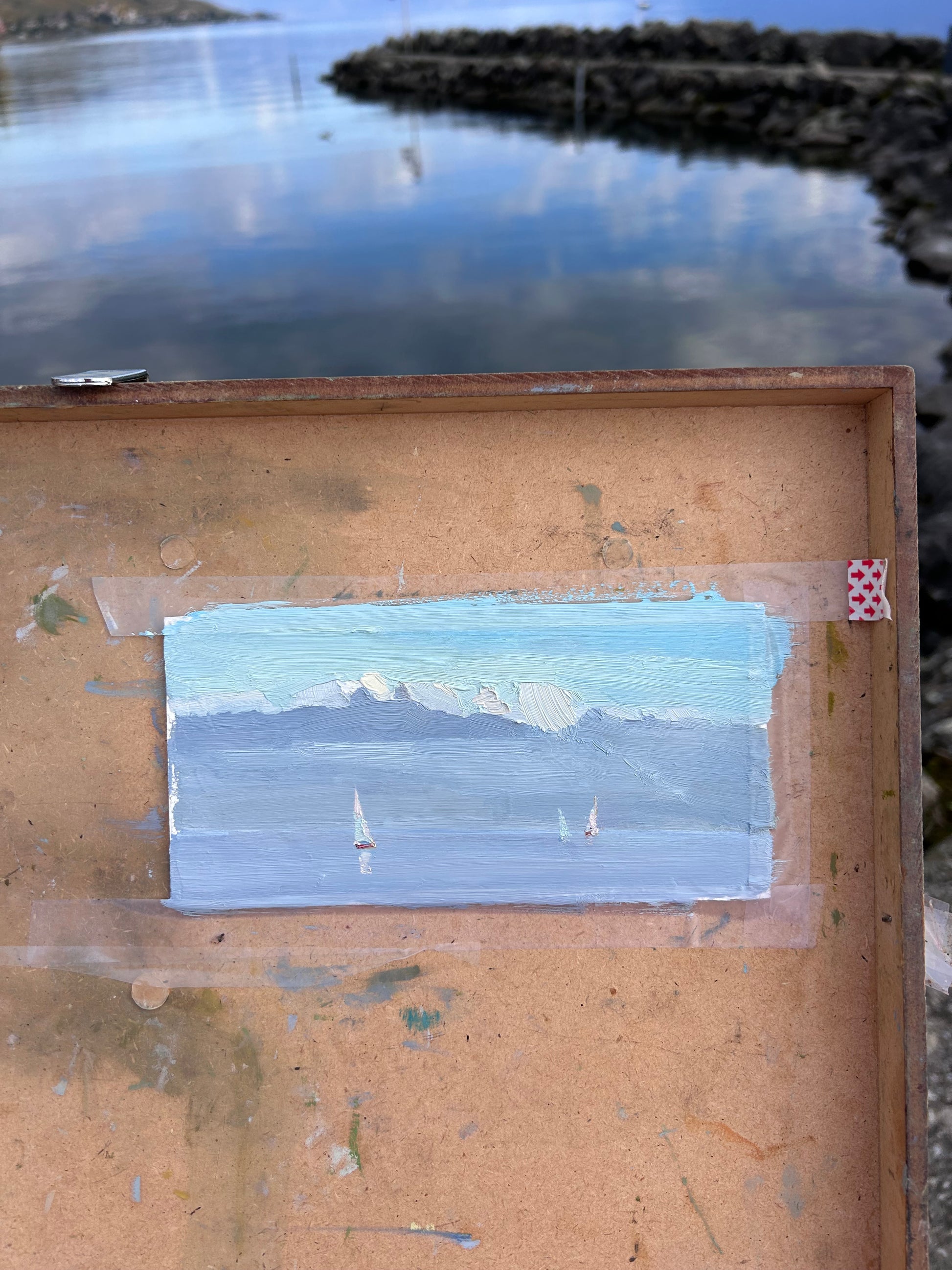 The quiet sailing. October. Lutry port. 24.10.2024. 7.5x16 cm
